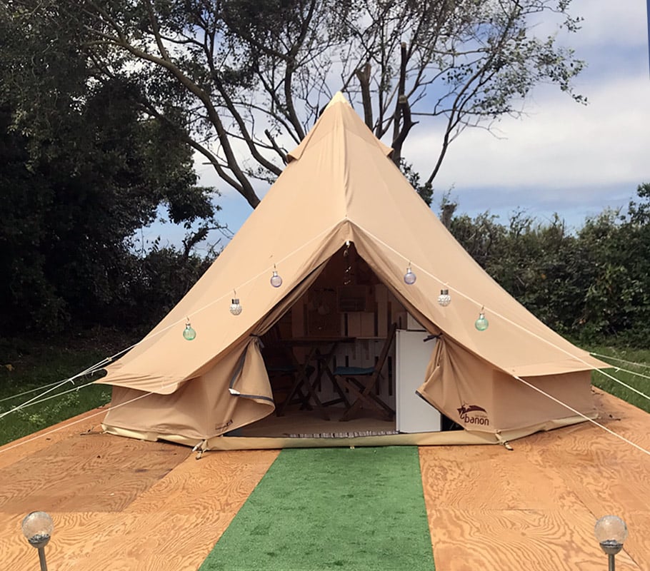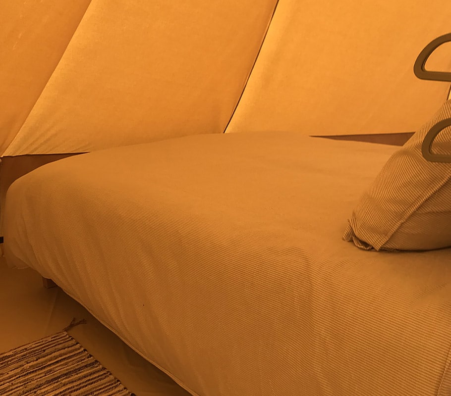 Nos tentes Indiana, posées sur terrasses, avec literie professionnelle d’hôtellerie, vous permettront de passer d’agréables nuits au plus près de la nature. Au choix, la version deux places avec un lit de 140×200 ou la version trois places avec trois lits de 0.90×200.